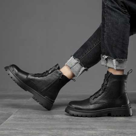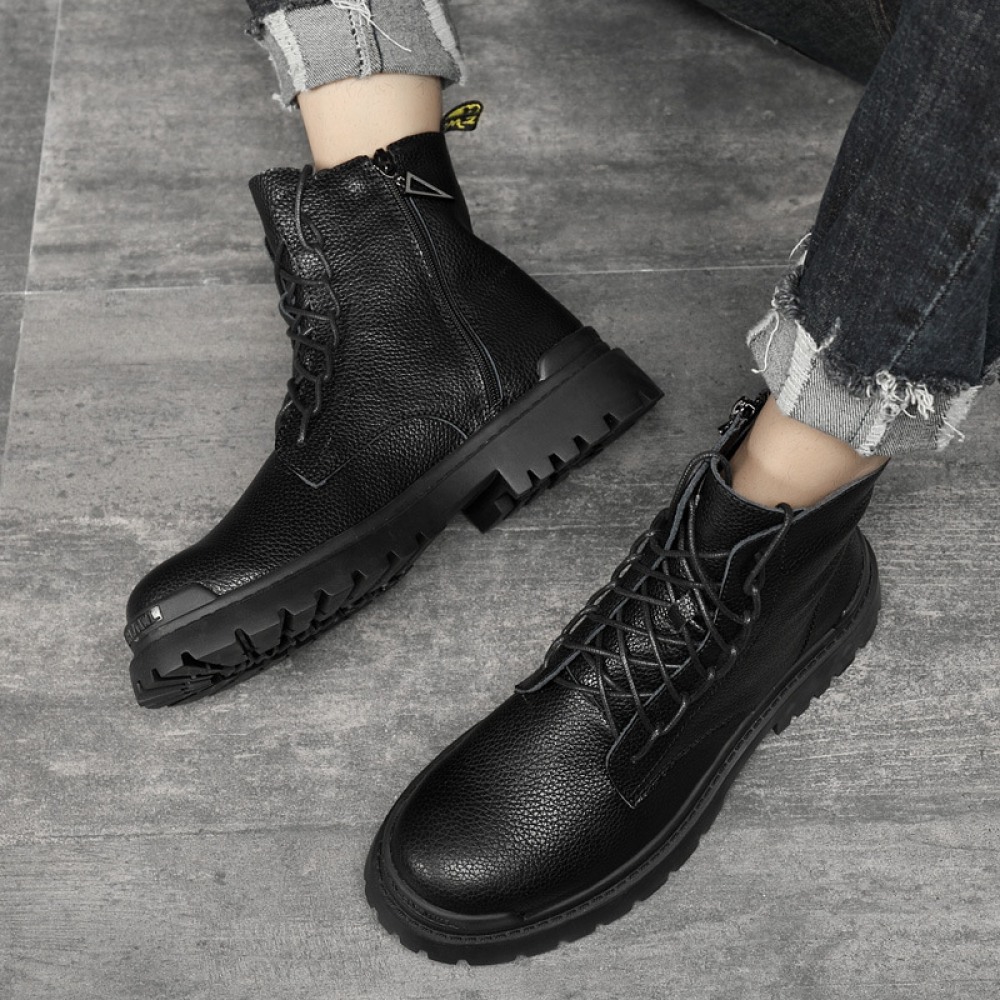 Men's Leather Hot Style Boots Casual Trend High-Top Tooling Martin Boots