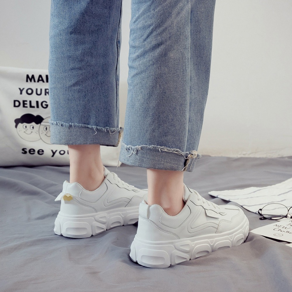 White Spring New Heightening Running Board Shoes Breathable Lace